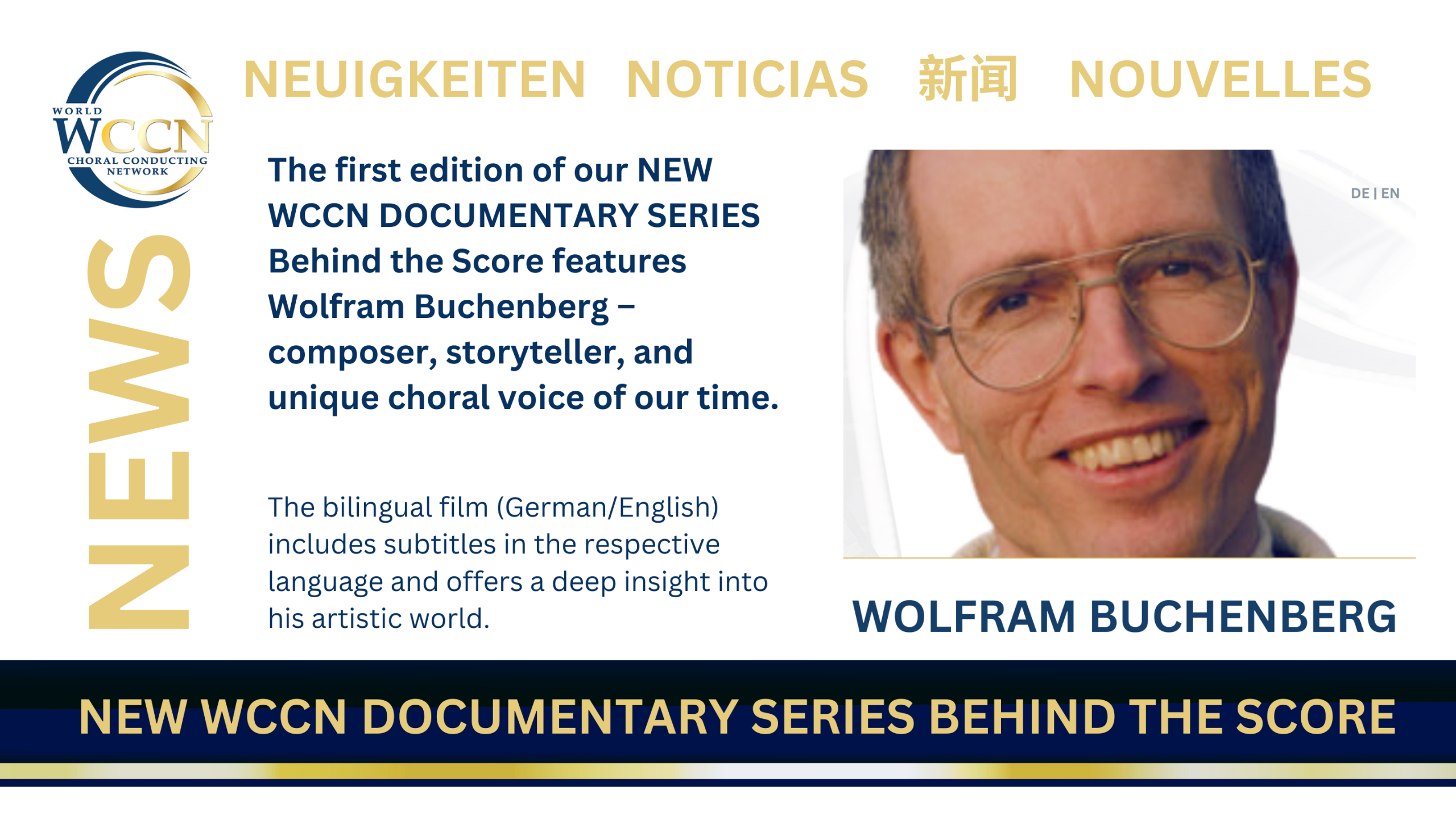 The WCCN proudly presents the first film in its new documentary series BEHIND THE SCORE – a cinematic portrait of composer Wolfram Buchenberg, whose works have shaped contemporary choral music with emotional depth and stylistic clarity.